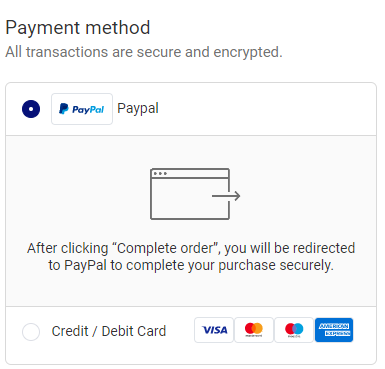 🛍 Submit order: After completing product selection, click Submit order. Next, you will be directed to PayPal to complete the transaction. If you choose to pay by credit card, you will see the option to "Pay with credit or debit card."